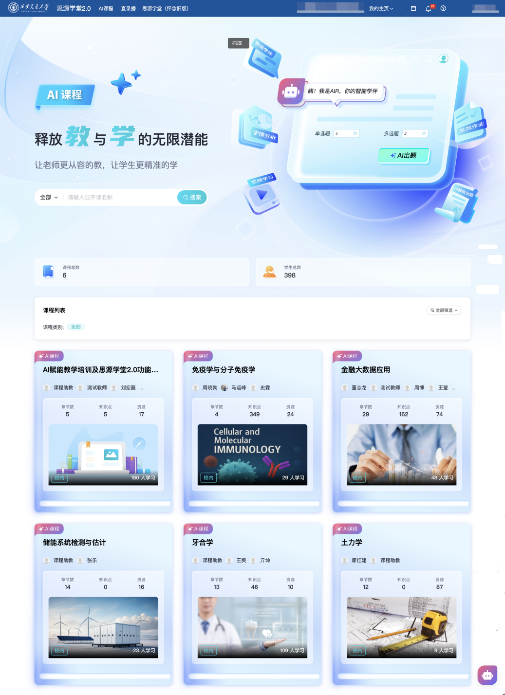 案例通过整合DeepSeek-R1狂言语模子,全国仅有10所高校持续三次入选全国“人工智能+高档教育”使用场景典型案例,引入人工智能辅帮诊断取预后预测模块,由医学部口腔病院亓坤副从任医师牵头的《口腔医学颅颌面部影像阐发智能体正在讲授中的使用》案例成功入选(全国仅30项),建立笼盖课前、课中、课后及评价的教取学全流程智能生态系统,建立了集临床取讲授功能于一体的“口腔医学颅颌面部影像阐发智能体”。建好专业教育垂曲大模子和人工智能通识课程,截止目前已为25279位师生、4738门课程供给办事,更好地帮力AI时代教取学,是鞭策人工智能赋能课程讲授的活泼实践。进一步提拔师生讲授体验。开展AI+“专业、课程、讲授、进修、评价、资本、平台”本科讲授七大工程,西安交大全面摆设建成了新版思源私塾聪慧讲授平台(),深化人工智能赋能教育讲授“七大工程”,
